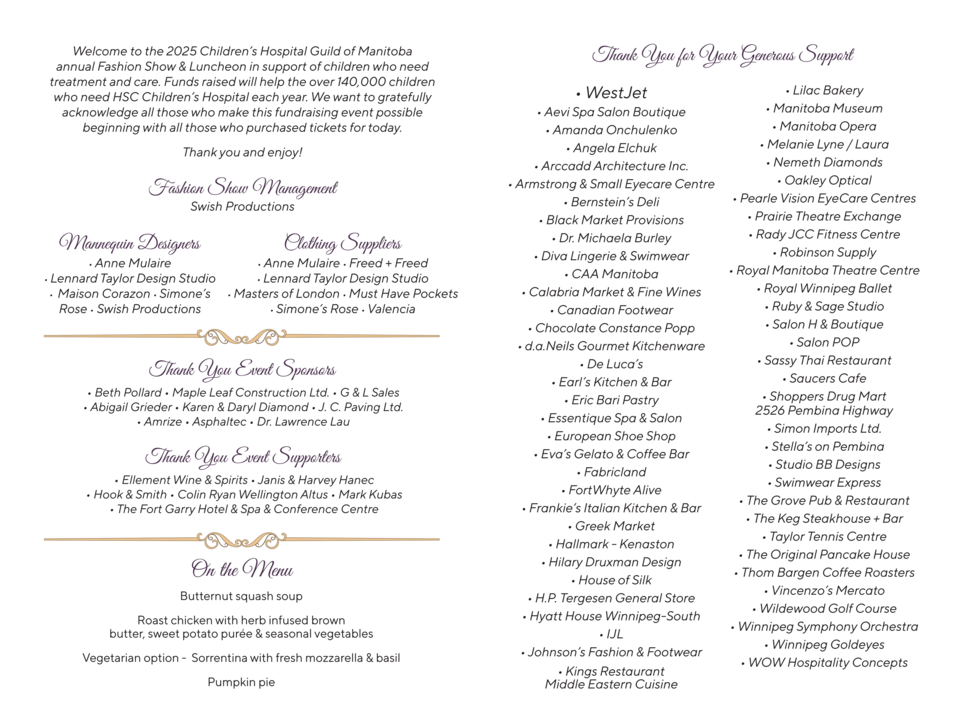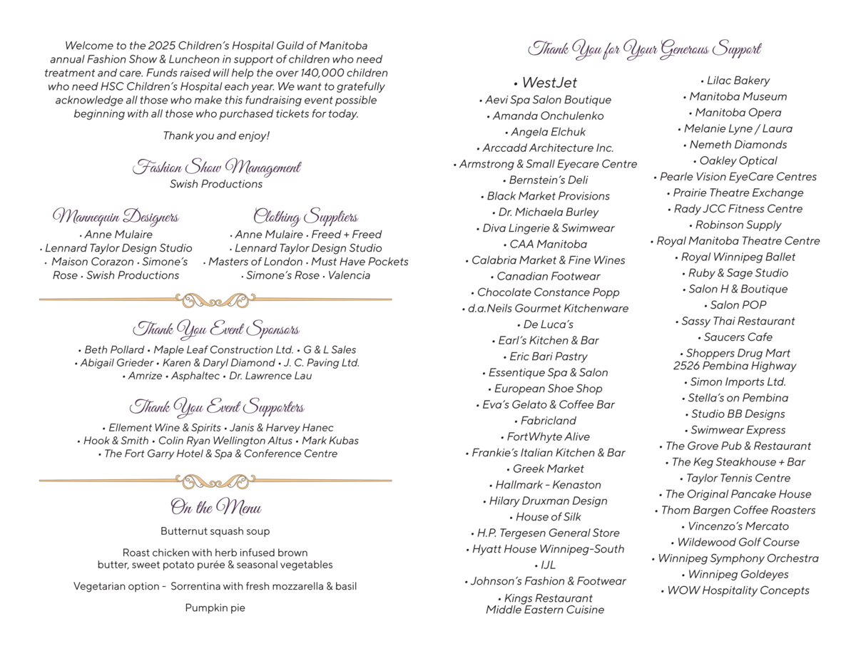 This year’s event will be a Dinner & Fashion Show on Wednesday, October 14, 2026,